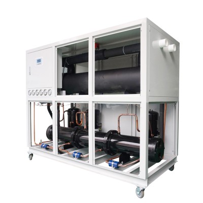 冷水機是一種通過壓縮機、蒸發器、冷凝器、膨脹閥所組成的制冷設備。水冷箱體式冷水機是因為其冷凝器(散熱器)為殼管式,通過外接冷卻水塔,冷卻水泵,使用冷卻水塔的水來為冷水機進行散熱。水冷式冷水機核心優勢:能效比高,針對有冷卻水源的場所使用,噪音低等...